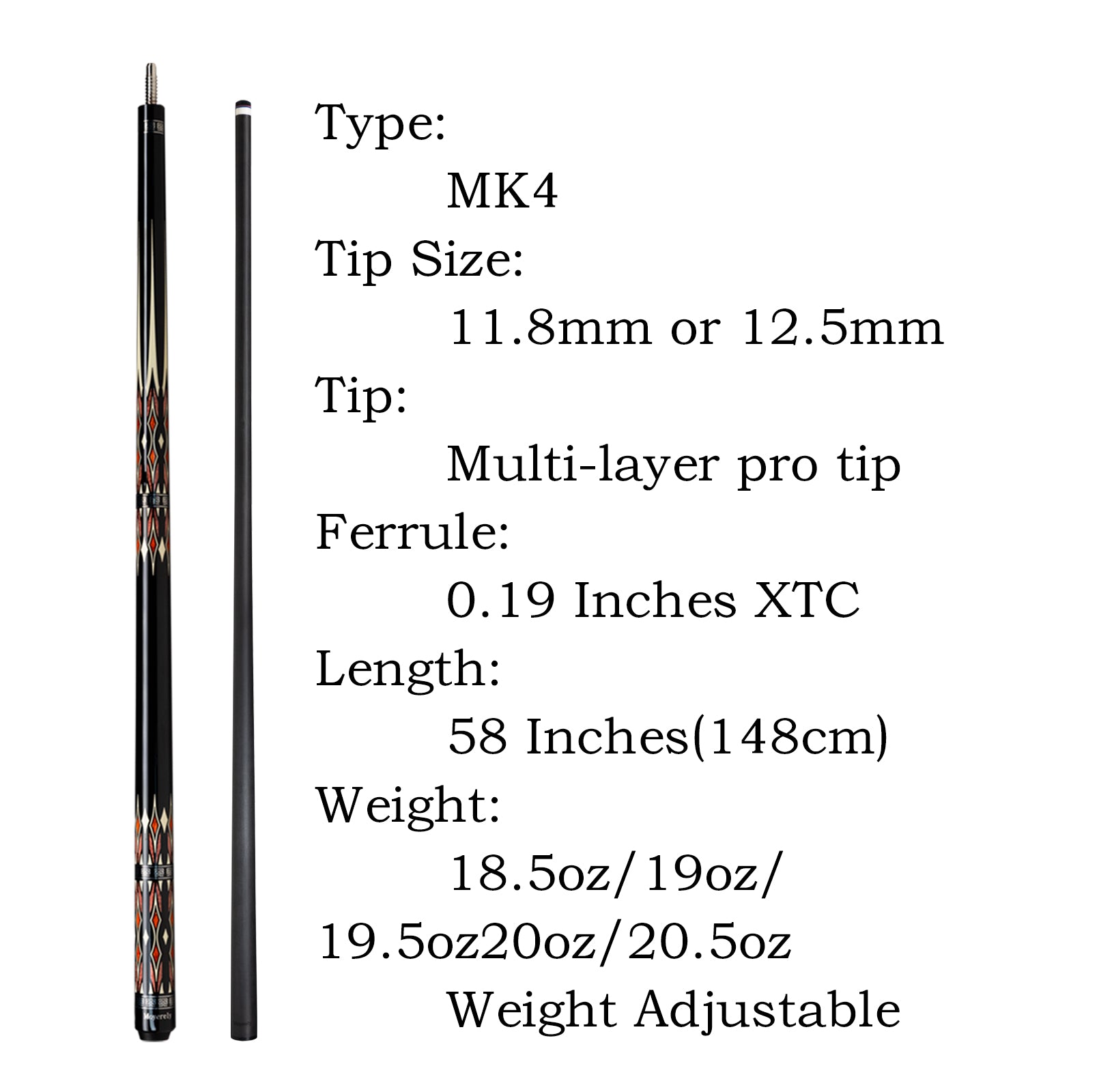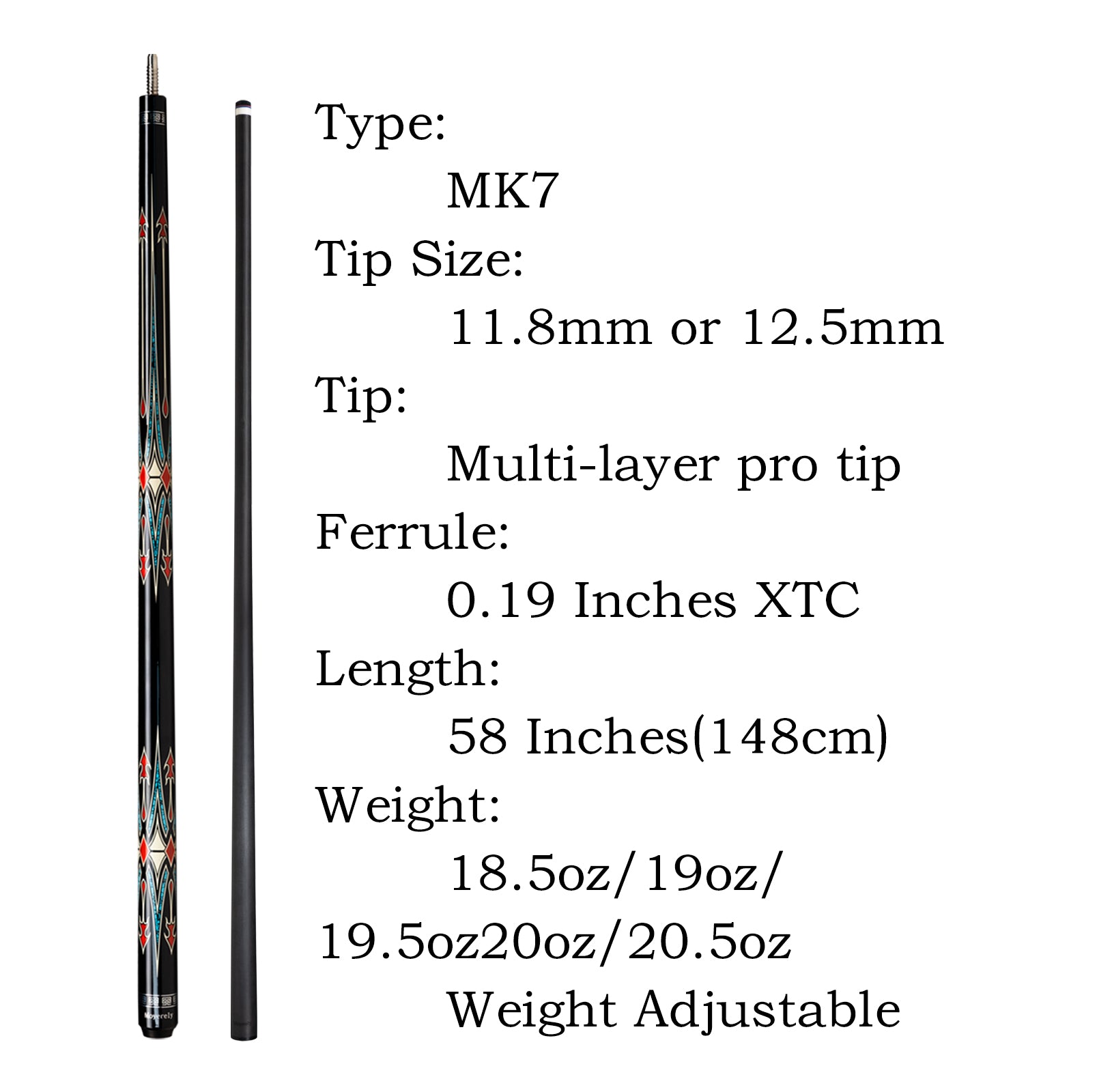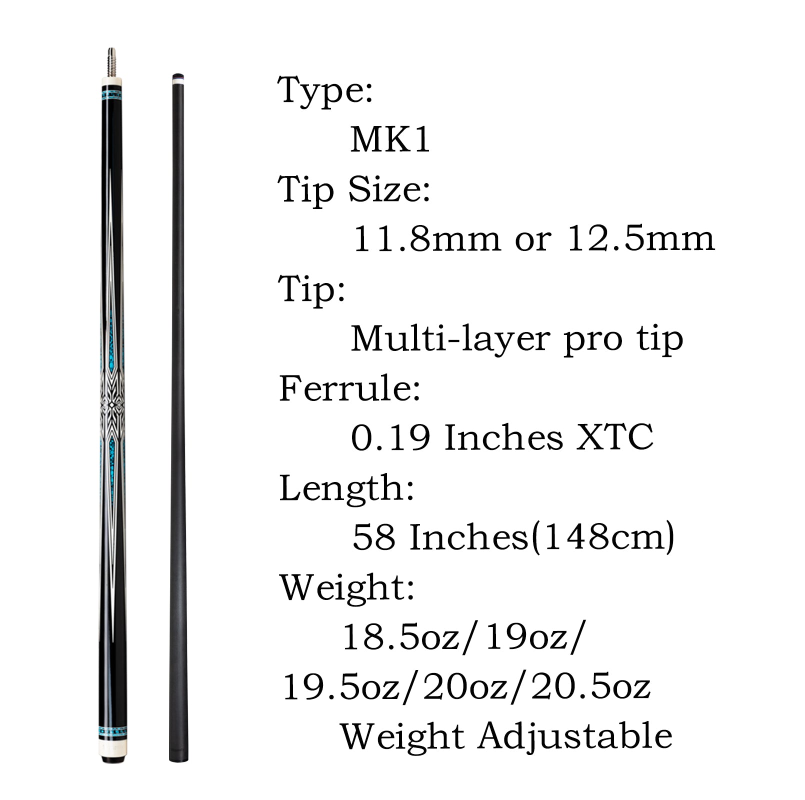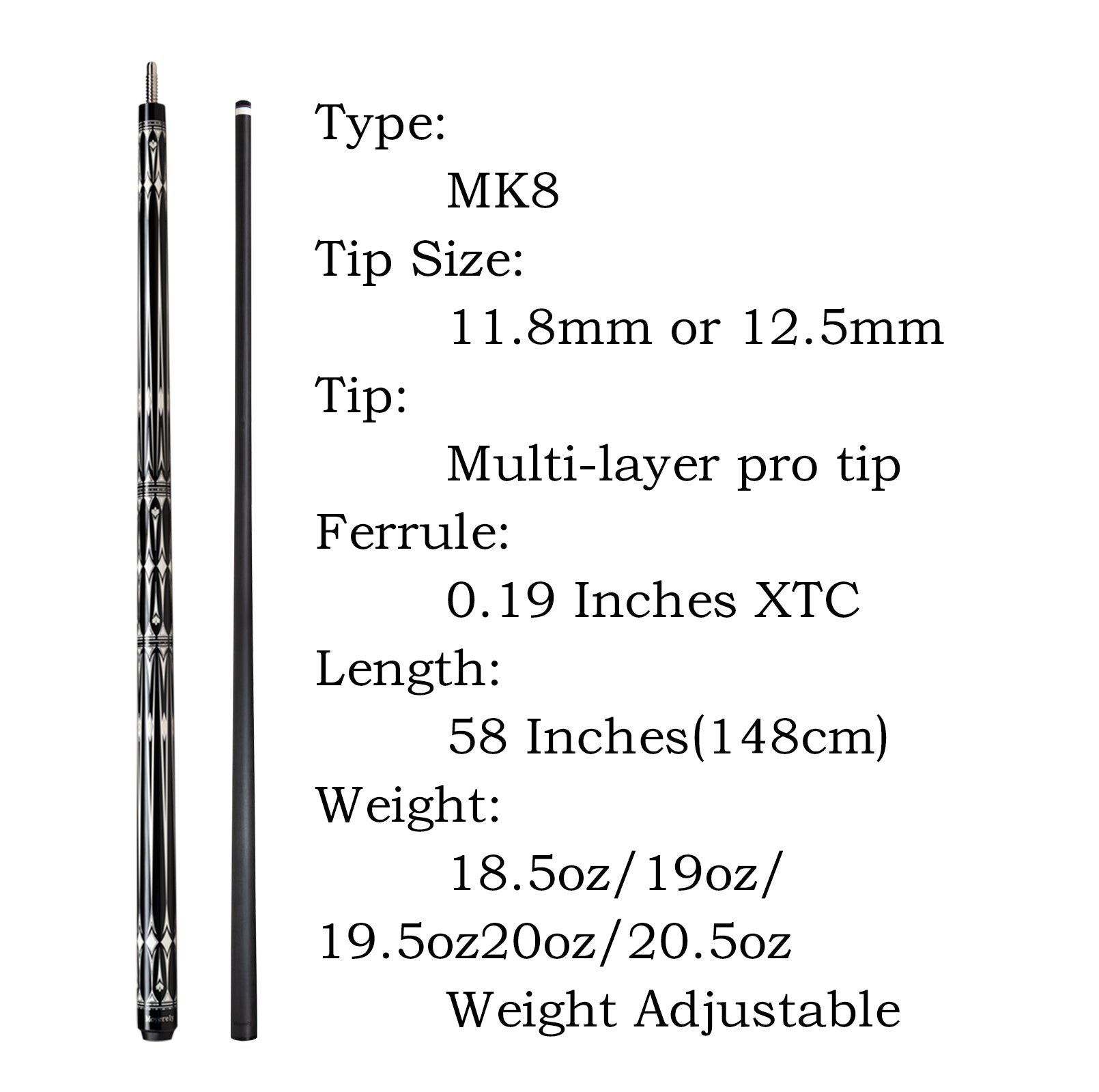 - [Carbon fiber pool cue shaft]11.8mm/12.5mm low deflection carbon fiber shaft,the lightweight shaft produces a lower deflection rate than most advanced wood shafts